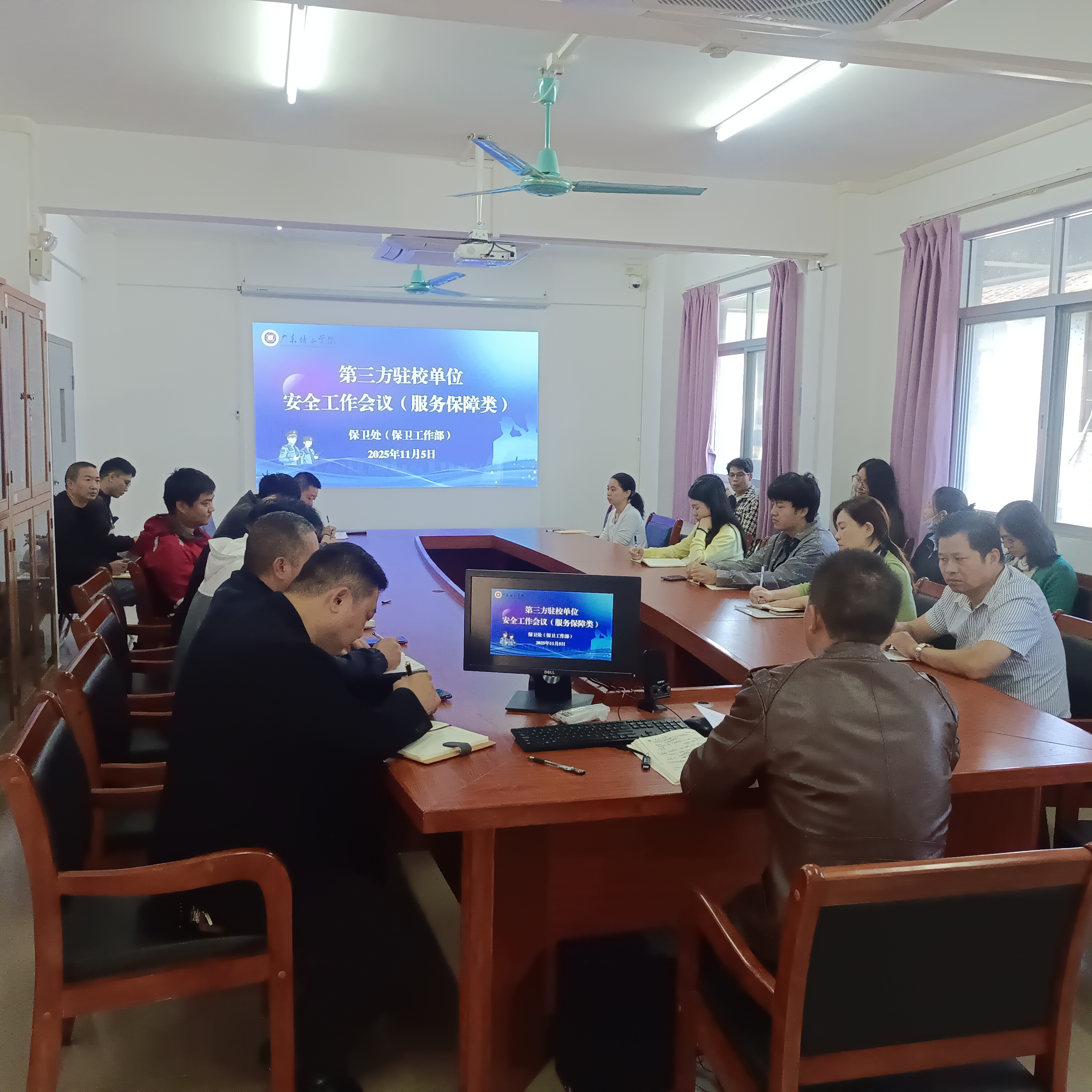 本网讯(保卫处 罗志琦)为做好校内第三方驻校单位校园安全管理工作,2025年11月4日和11月5日分别针对基建工程类和校园保障服务类驻校第三方单位人员,组织召开安全工作专题会议,会议由保卫处牵头,校内各业务联系部门参与,第三方管理人员参加,会上由保卫处负责人唐伏龙做了安全工作强调。